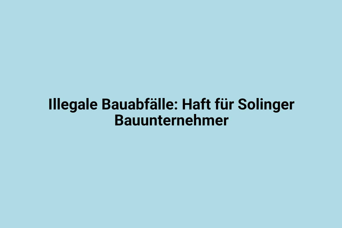 8. October 2025 Ein Bauunternehmer aus Solingen muss wegen vorsätzlicher Bodenverunreinigung in mehreren Fällen für drei Jahre und zwei Monate in Haft. WDR.de Hier den …
