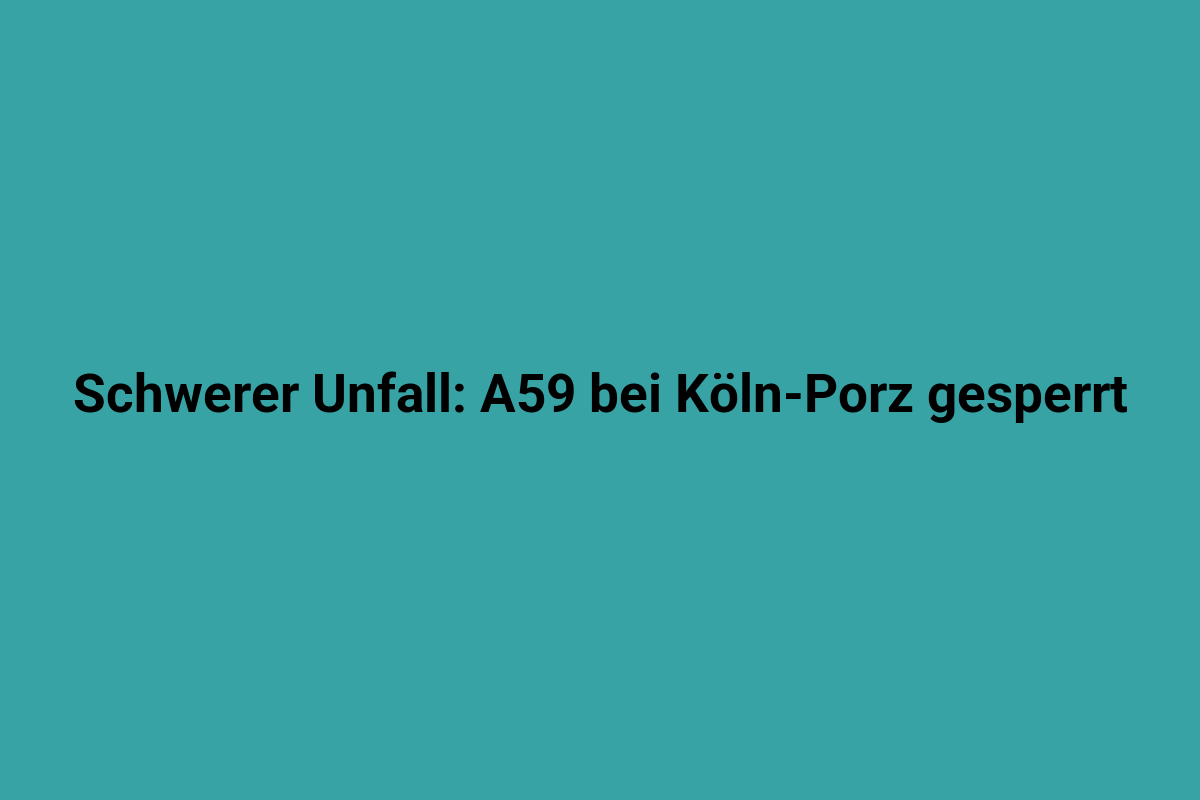 KölnSchwerer Unfall: A59 bei Köln-Porz gesperrt Veröffentlicht am9. Oktober 20259. October 2025 Auf der A59 zwischen Köln und Bonn gab es einen Unfall mit mehreren Fahrzeugen. Die Autobahn ist in beide Richtungen gesperrt. WDR.de …