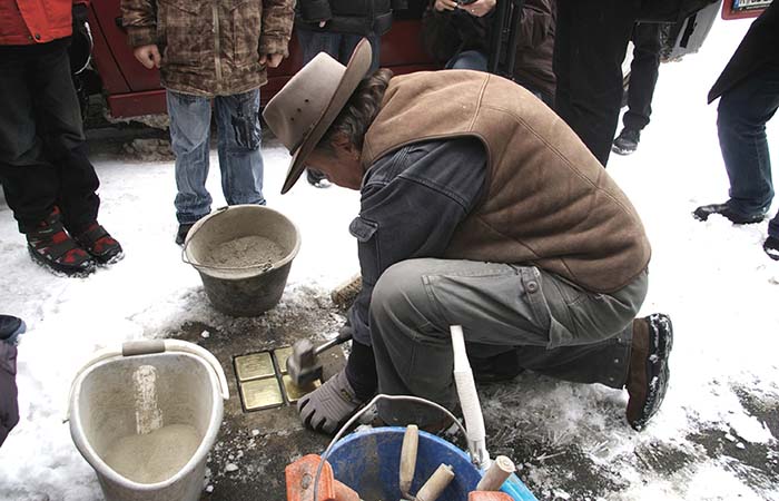 Ge-Denkanstoß oder Stein des Anstoßes? Gunter Demnig setzt seine Idee unbeirrt in die Tat um. Foto: Karin Richert