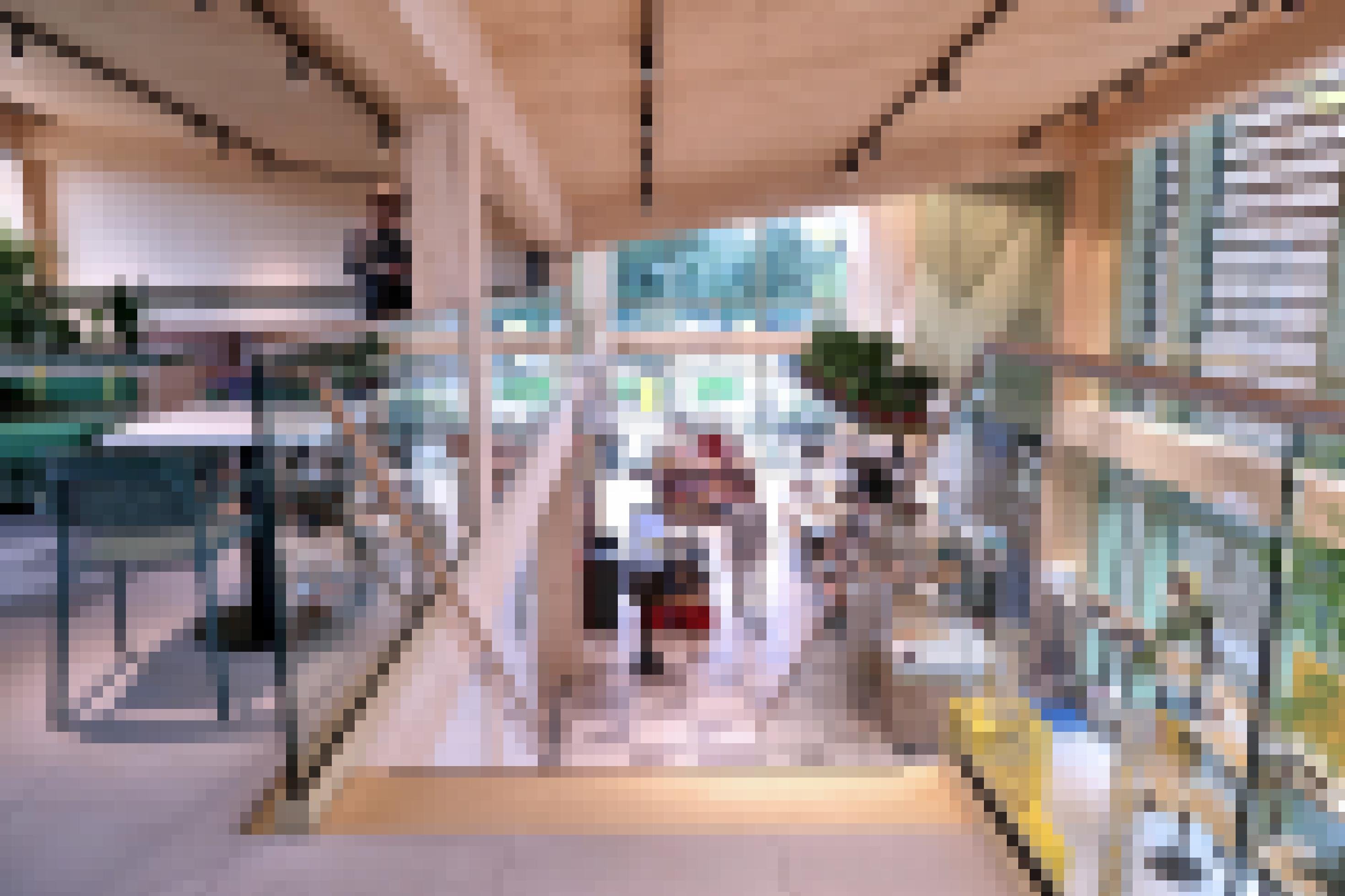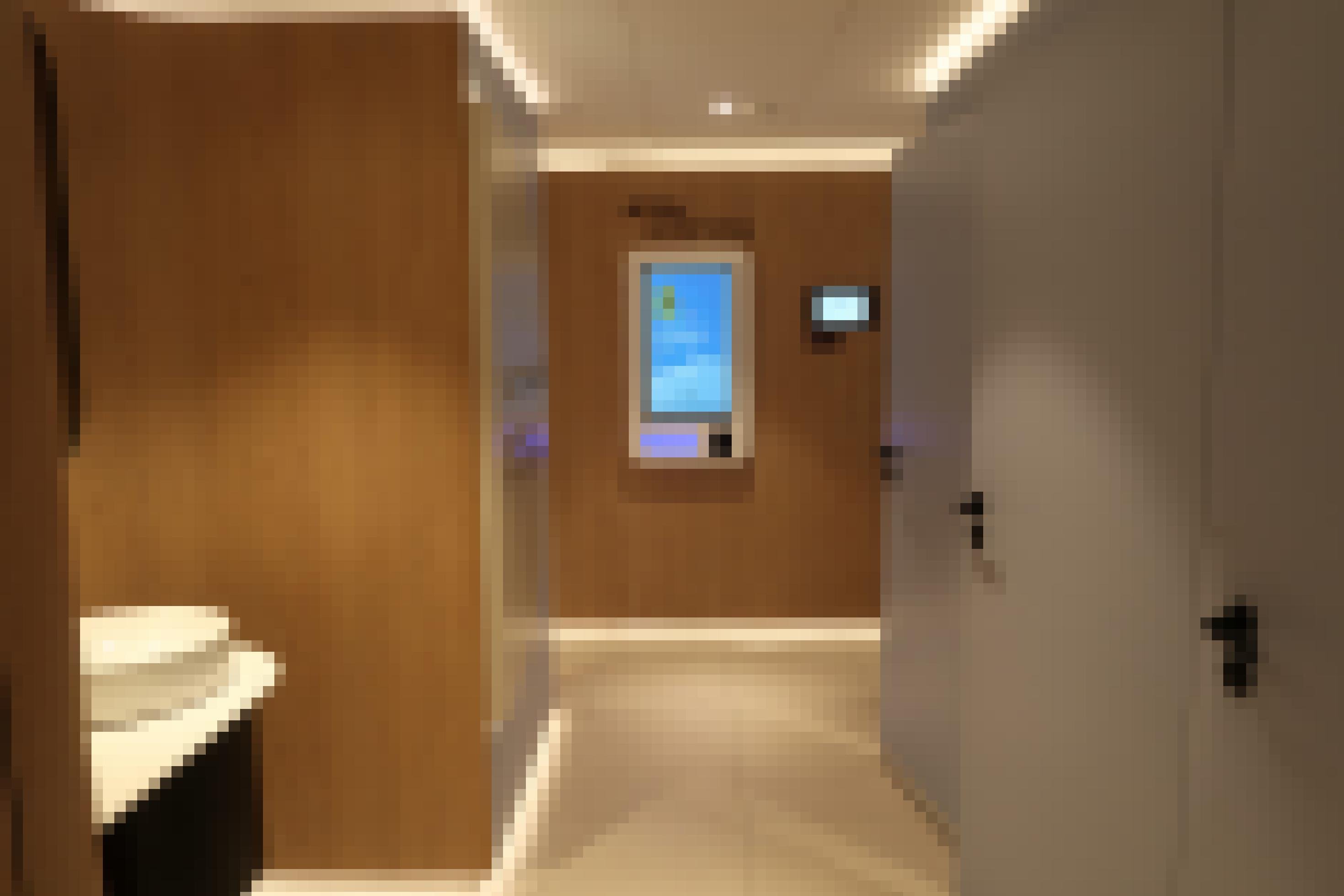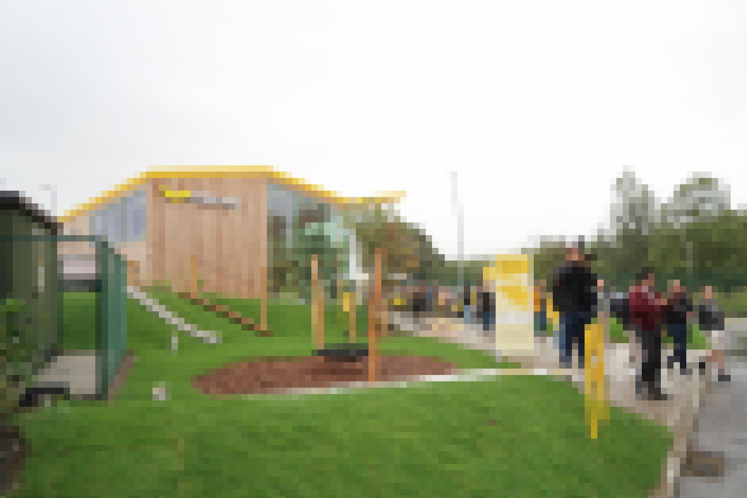 Die Toilette wird mit Regenwasser gespeist, die Wege zum Spielplatz bestehen aus Recyclingbeton und Muschelkalk. Im Duschraum hängt ein Spiegel, der eine KI-gestützte Gesichtsanalyse vornimmt.